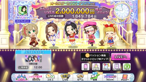 こんにちは。松です。 オールスターカウントダウンLIVE開催です! 楽曲をプレイして、衣装「ハピネス・エール」の交換チケットやミッション報酬を入手しちゃいましょう。 今回は過去の年末衣装の交換チケットも手に入りうるそうですよ。 ミッションについて…